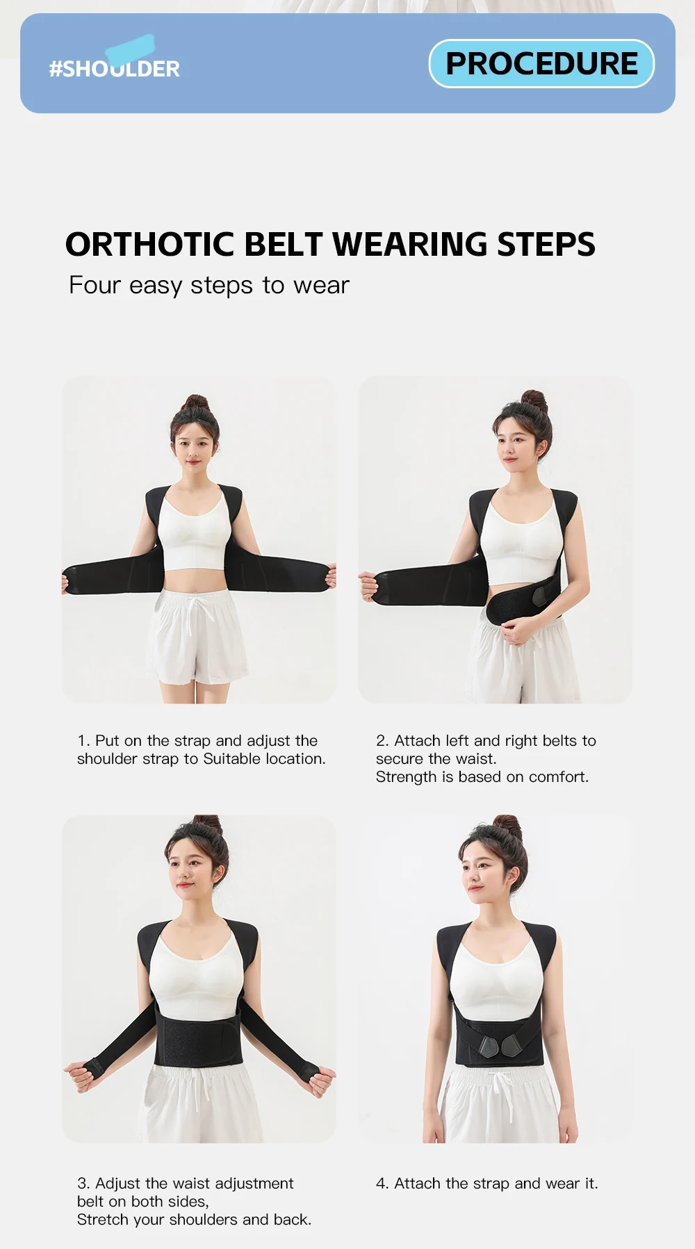 Black Posture Corrector Brace for Women Breathable Elastic Back Posture Correction Belt Adjustable Shoulder for Students